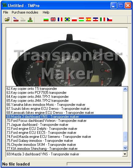 Transponder Maker Pro (also known as TMPro keymaker or TMPro keymaker) are softwares for transponder key making,transponder key programming,transponder key copying and PIN code/security code calculating. Protection programmer is small box, which have to be connected to free PC USB port.Software user interface supports 10 languages - Bulgarian,English,French,Portuguese, Polish, Hungarian, Spanish, Serbian, Italian and Czech.They are simply to use and offer wide range of softwares that supports various immoboxes and keys. All softwares are auto-updateable to latest version available on server.At start of software it checks if there is new version released.If released,software automatically updates itselfs,this way you always run latest versions. TMPro softwares are designed to help in locksmith`s job.